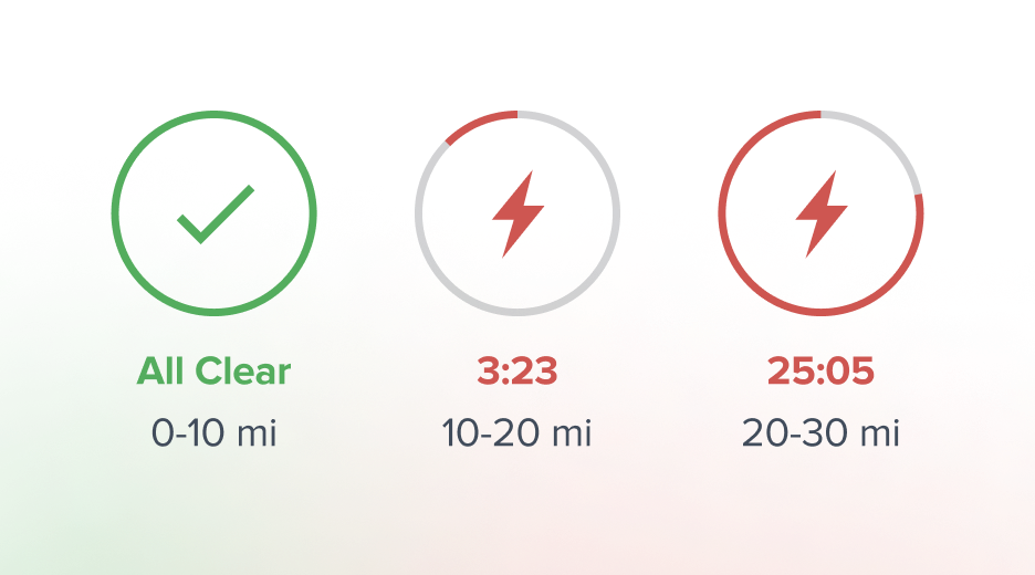 Every phone shows the same countdown, so staff on remote fields act immediately without waiting for a weather call from the top down.