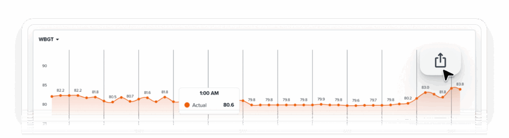 The system tracks your heat stress thresholds, triggers alerts, logs every event from your site in real time, and stores it in your historical weather reporting dashboard for future audits or reviews.